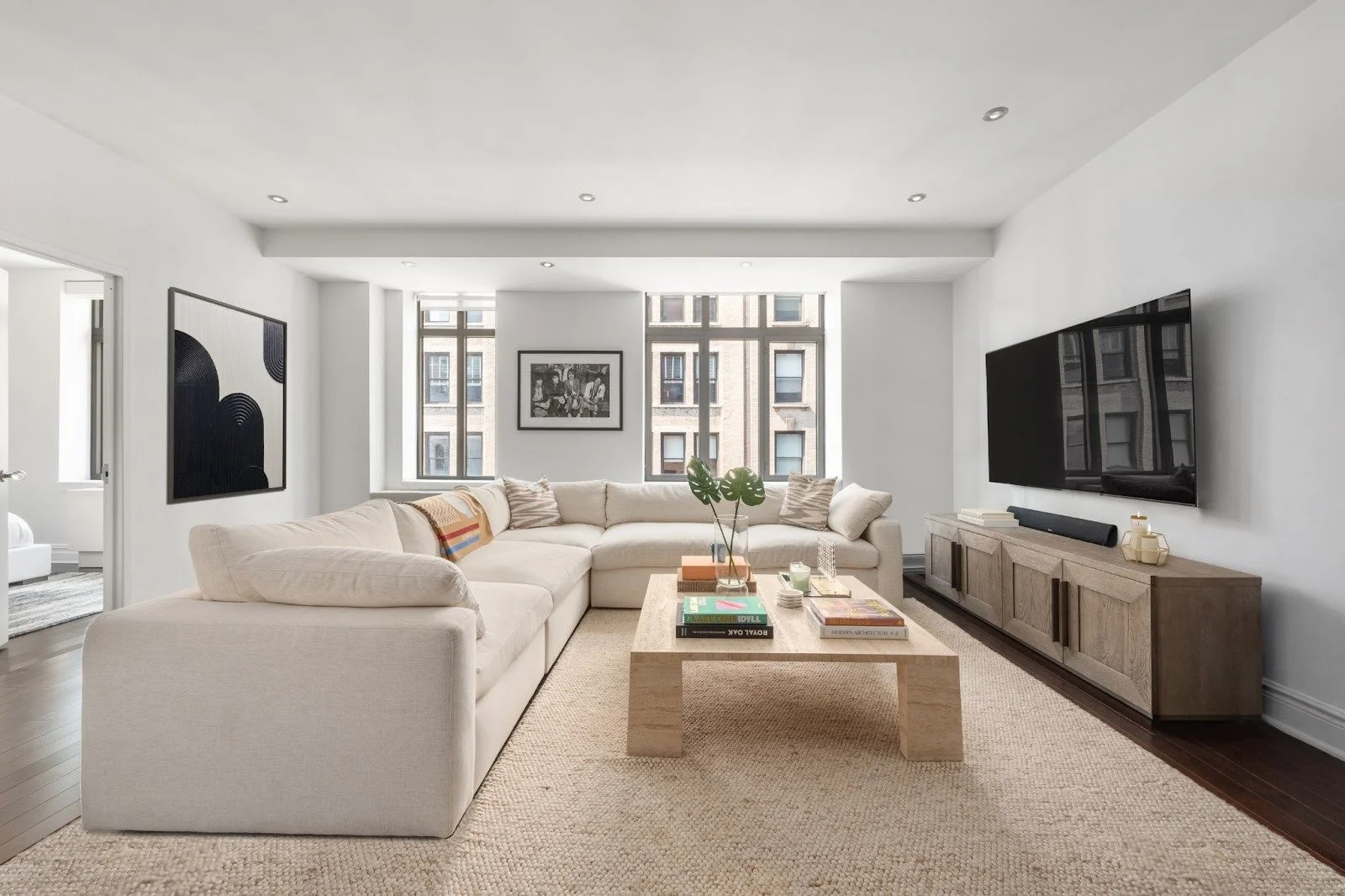 At the crossroads of Chelsea and Flatiron, Residence 9C at 125 West 22nd Street is quietly positioning itself as one of the best-value two-bedrooms in the neighborhood. Listed for $1,990,000, this sun-filled home sits on the 9th floor with southern exposure, 9’5” ceilings, and oversized windows that flood the space with natural light. A gracious entry foyer leads into a chef’s kitchen equipped with Viking and Sub-Zero appliances, a wine fridge, custom cabinetry, and a generous island that anchors the open living space.
