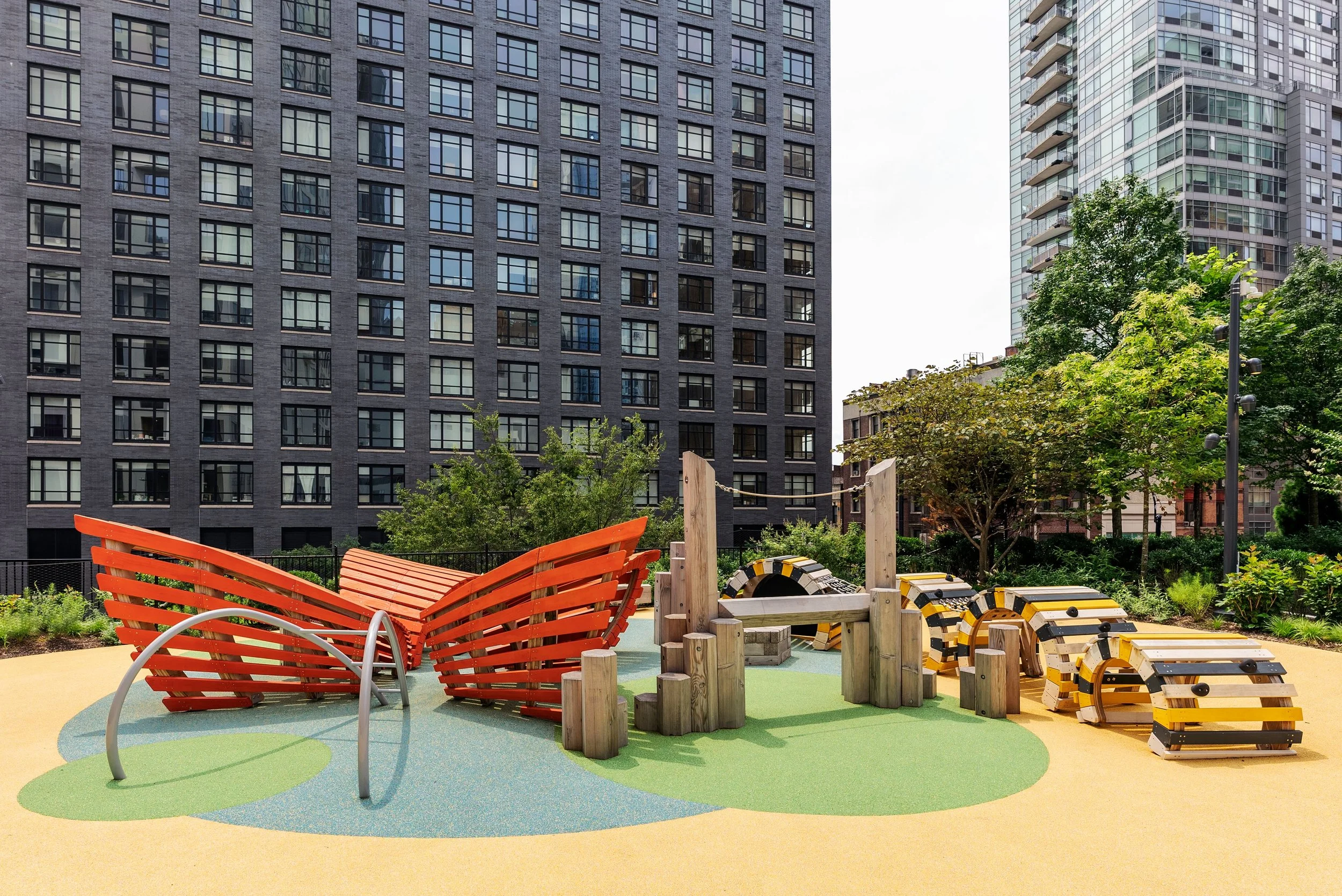11 Hoyt, designed by the renowned Jeanne Gang, features a nearly 27,000-square-feet elevated private park. What makes this unique is that the park includes multiple flower gardens, all strategically featuring native flowers that draw in monarch butterflies during their yearly migration through NYC. If that wasn't cool enough, the park also includes a butterfly-themed playground where young residents can enjoy running and climbing a giant caterpillar and butterfly jungle-gym. Hollander Design is responsible for the thoughtful landscape design and envisioned it to be an experiential park with thoughtfully designed outdoor spaces ideal for a wide array of activities including exercise and play, as well as zones for relaxation and contemplation. Residents can enjoy an alfresco barbecue, meditative yoga on the fitness deck, an invigorating dip in the outdoor hot tub or even take their furry friends to the private dog park.