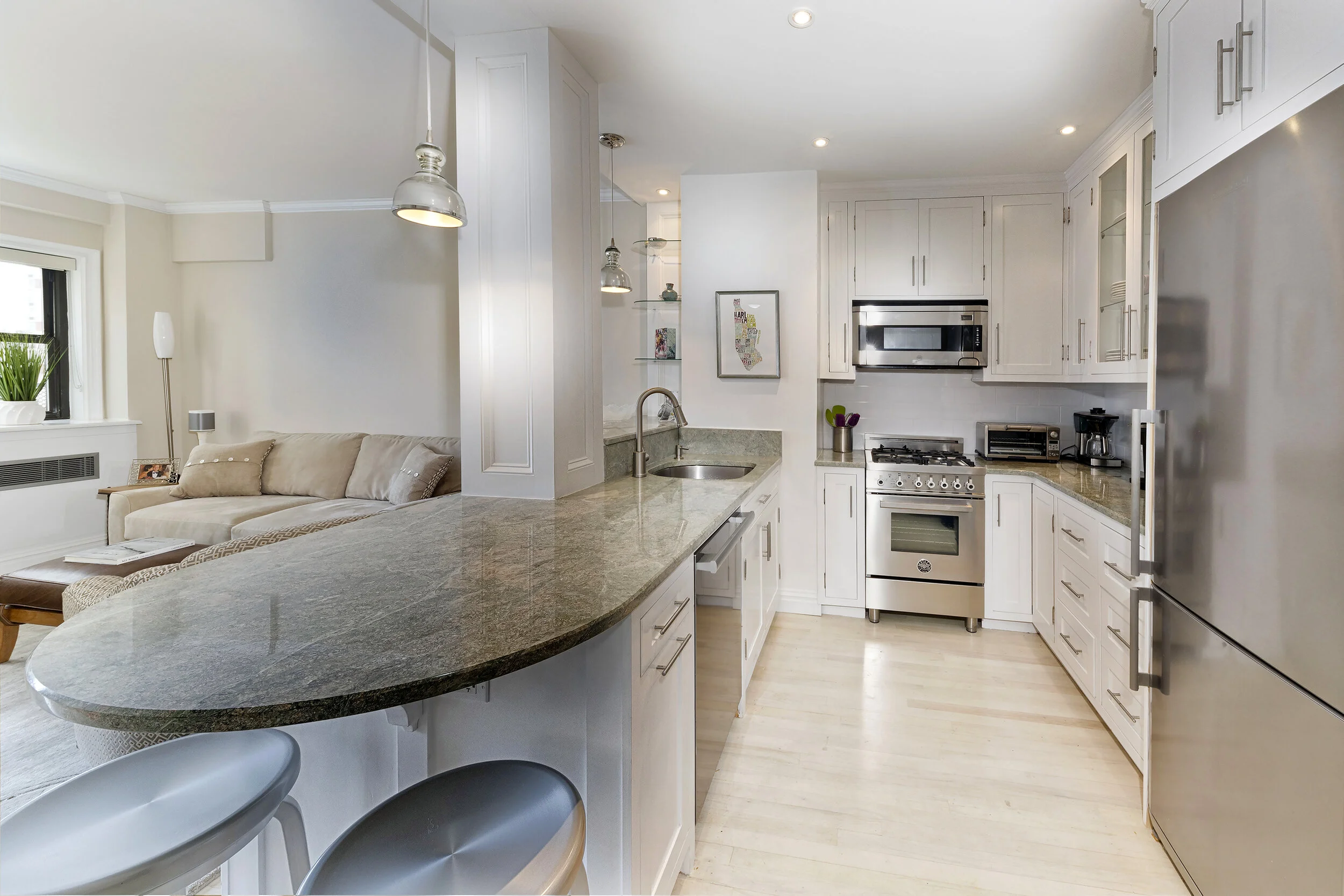 About: This fabulous one-bedroom penthouse with a private terrace has been completely renovated and expanded past the original floor plan. All finishes and appliances are of outstanding quality: custom designed cabinetry, Bertazzoni stove, Miele dishwasher, Blomberg refrigerator, white oak floors and Verde Matisse granite counter tops. Envision the sunrise with your coffee on the 30' x 6.5-foot Terrace and enjoy the sunset glow with a glass of wine. The Avon House is a charming boutique Co-op with a Roof Top Oasis that is a treasure. The apartment is listed for $995,000 and is represented by Chris Halstead, Sharon Fahy, and Nicole O’Reilly.