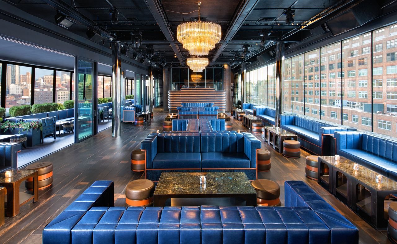 And for a rooftop that leans fully into nightlife, PHD Rooftop at Dream Downtown in Chelsea delivers a high-design, high-energy lounge on the 12th floor, complete with Italian Portoro marble, Macassar ebony, nickel-finished walls, and amber Venini glass chandeliers. It’s open year-round with two full-service bars, shareable bites, bespoke cocktails, bottle service options, and live DJs that keep the atmosphere electric—plus those uninterrupted Hudson River and Empire State Building views that never stop being a flex.