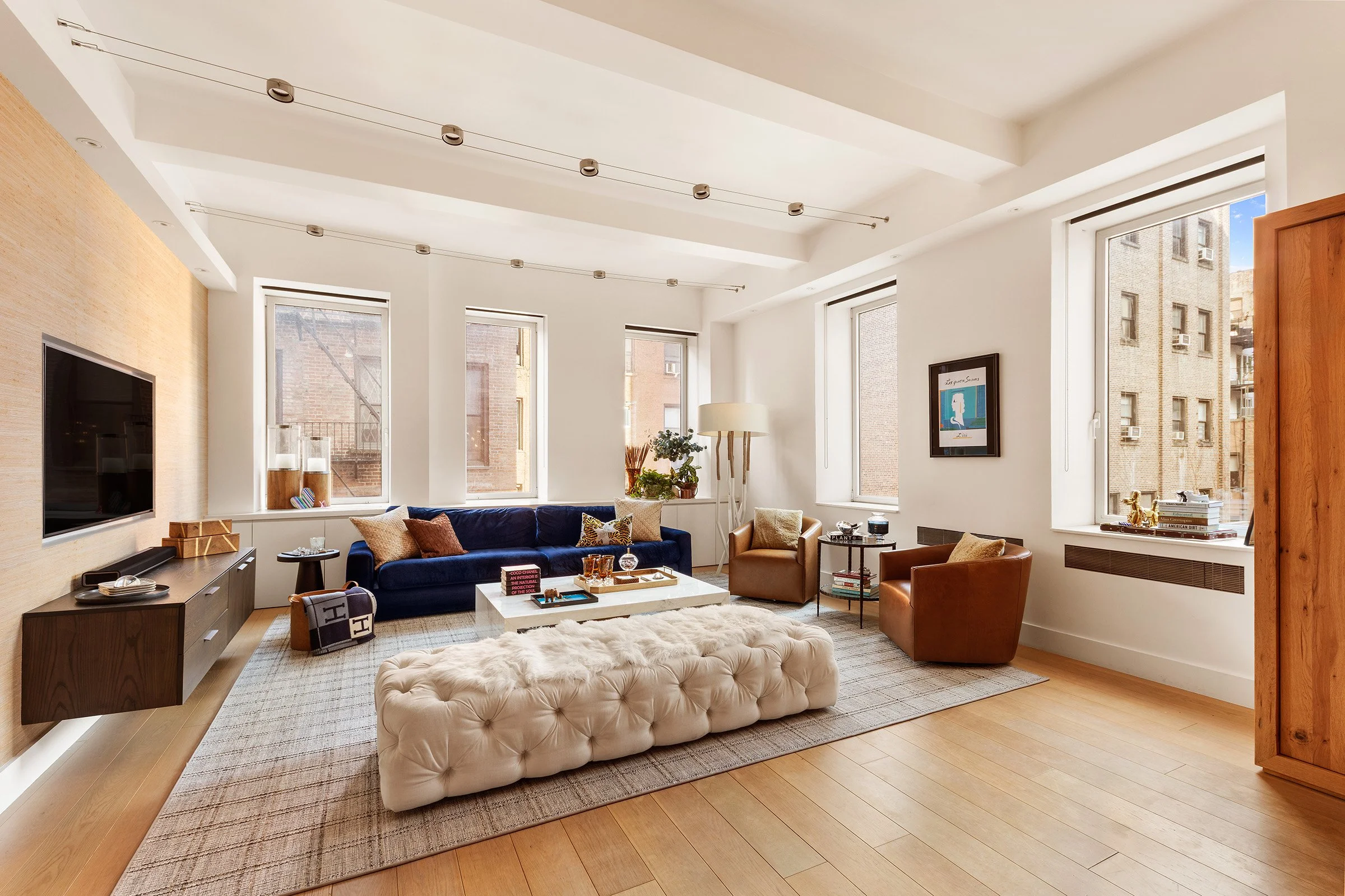 Set within a boutique Chelsea condominium, this northeast corner two-bedroom, two-bathroom residence offers a refined, architectural presence defined by thoughtful design and modern comfort. Fully renovated with a design-forward sensibility, the home blends modern luxury with warmth and ease. The living and dining area is open and inviting, framed by oversized windows, wide-plank hardwood floors, and high ceilings that enhance the loft-like proportions. Clean sightlines and layered lighting create a space well suited for both entertaining and everyday living. Represented by Louise Phillips Forbes / Brown Harris Stevens.