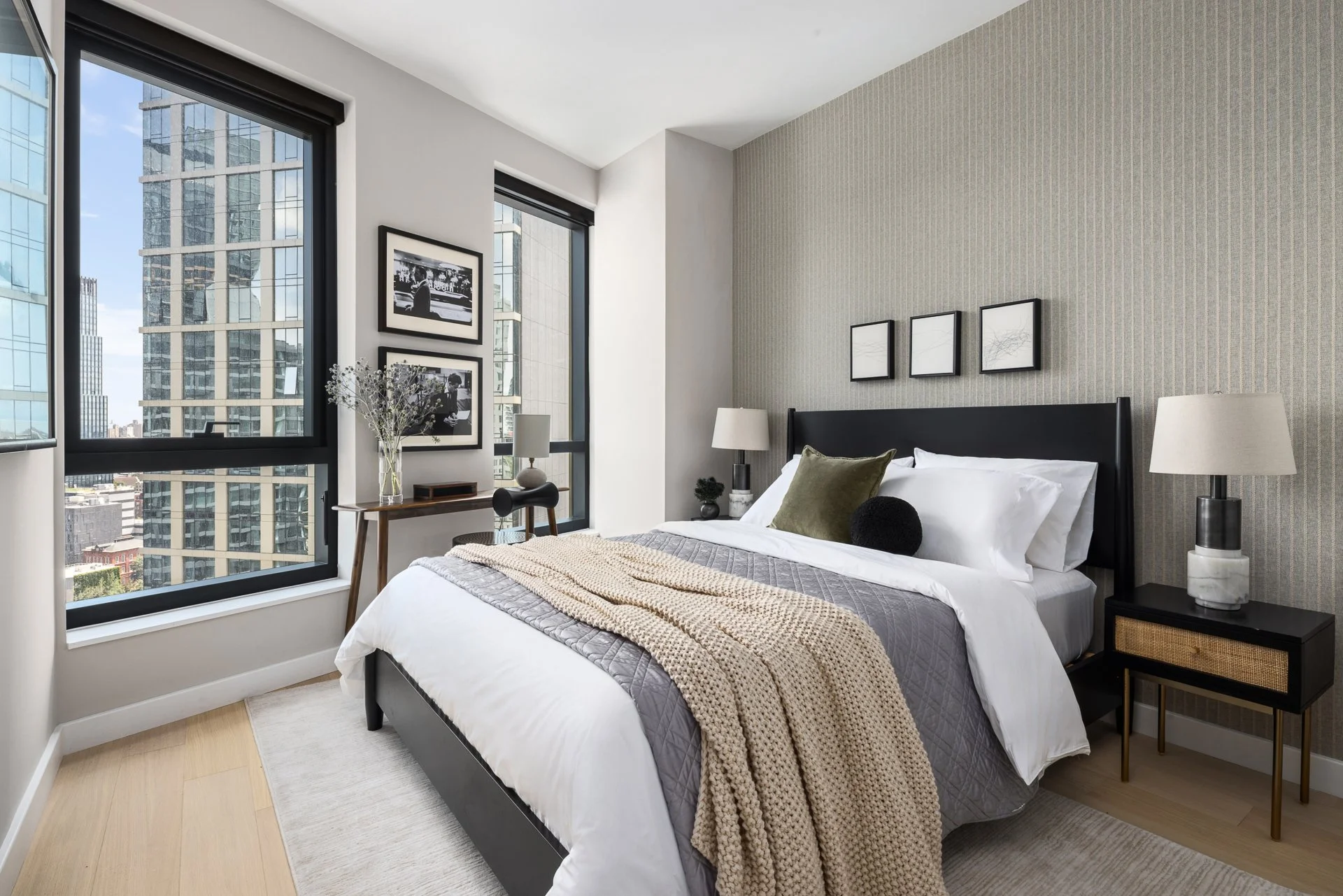 Perched on the 44th floor of The Brook — Downtown Brooklyn’s newest 52-story rental tower — Residence 44D is a two-bedroom that delivers skyline views, elevated design, and resort-style amenities for $9,010/month. Inside the home, residents are greeted with keyless entry, a Bosch washer/dryer, and a chef-style kitchen featuring quartz countertops and custom Italian cabinetry.
