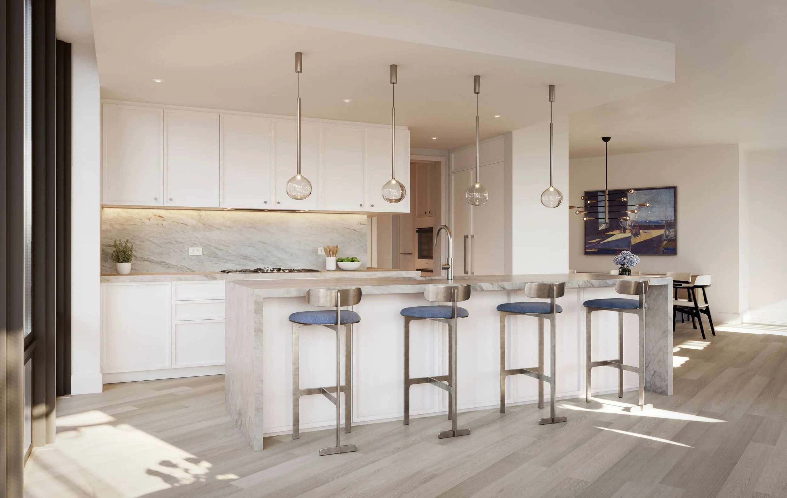 The Park Loggia at 15 West 61st Street is the latest iconic achievement of Skidmore, Owings & Merrill and is in the epicenter of culture and luxury, quite literally moments from New York City’s most celebrated experiences. Residence 19A is a high floor three bedroom with loggia and expansive views of Central Park and Columbus Circle. A gracious entry gallery with wide plank white oak floors leads to a chef’s kitchen featuring a quartzite countertop, breakfast bar and full Miele appliance package, including double ovens and a wine refrigerator. The primary bedroom has access to the outdoor space, features a large walk-in closet and spacious five-fixture marble bathroom. Nearly 20,000 square feet of thoughtfully planned amenities, designed by AD 100 designers Pembrooke & Ives, includes ample indoor and landscaped outdoor gardens and roof terrace, spaces for entertaining, dining, fitness, and leisure activities to suit every taste. Priced at $6.675 million.