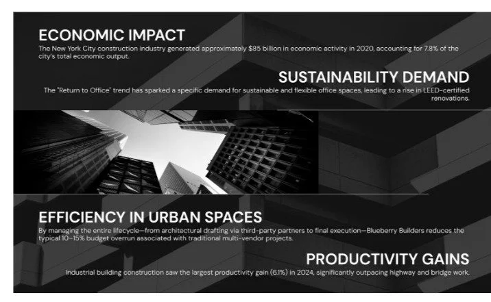 Among high-end general contractors in NYC, Blueberry Builders occupies a specific and well-documented position. Founded in 2010 and headquartered in Lower Manhattan, the firm has built its reputation across more than a decade of high-end restaurant, hospitality, retail, health and wellness, and office work throughout