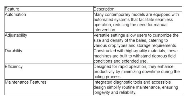 The modern technological advancements in forage collection equipment have significantly transformed agricultural practices. These machines are engineered to streamline the process of cropping, bundling, and preserving plant material, making them indispensable on farms. Below are some essential elements that characterize the functionality and efficiency of these machines.